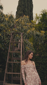 Fallen Flowers Floral Mesh Off-Shoulder Midi Dress