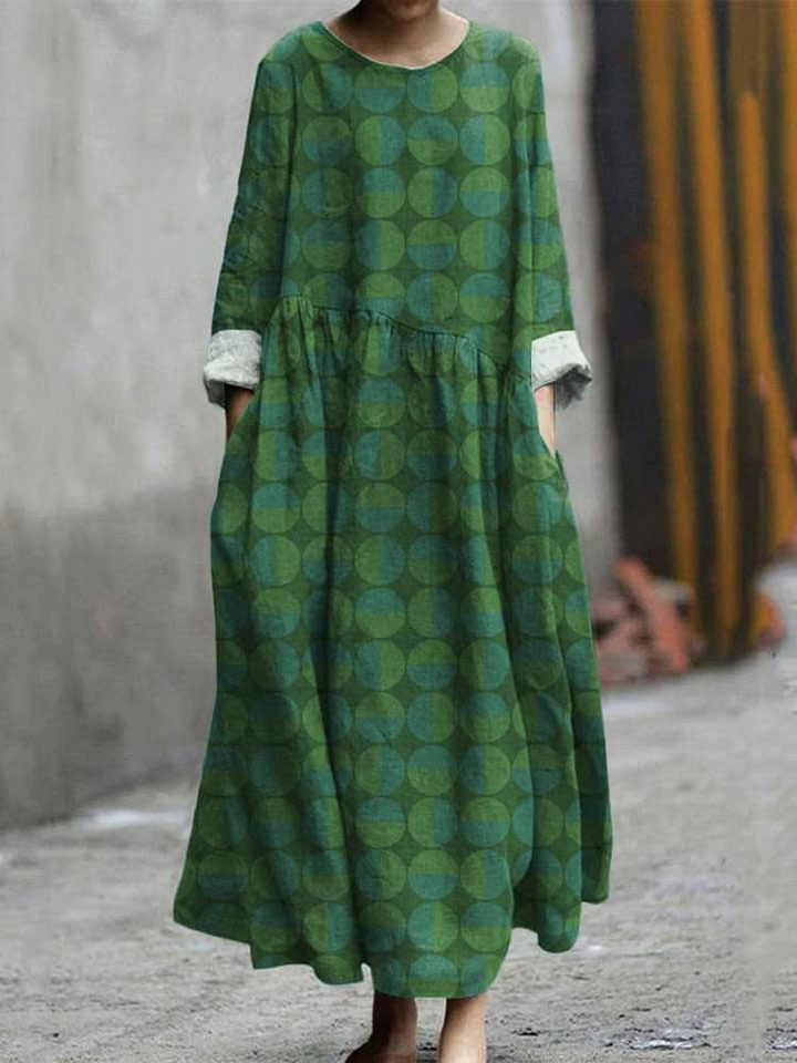 Geometric Circle Pattern Printed Women's Pocket Cotton Dress