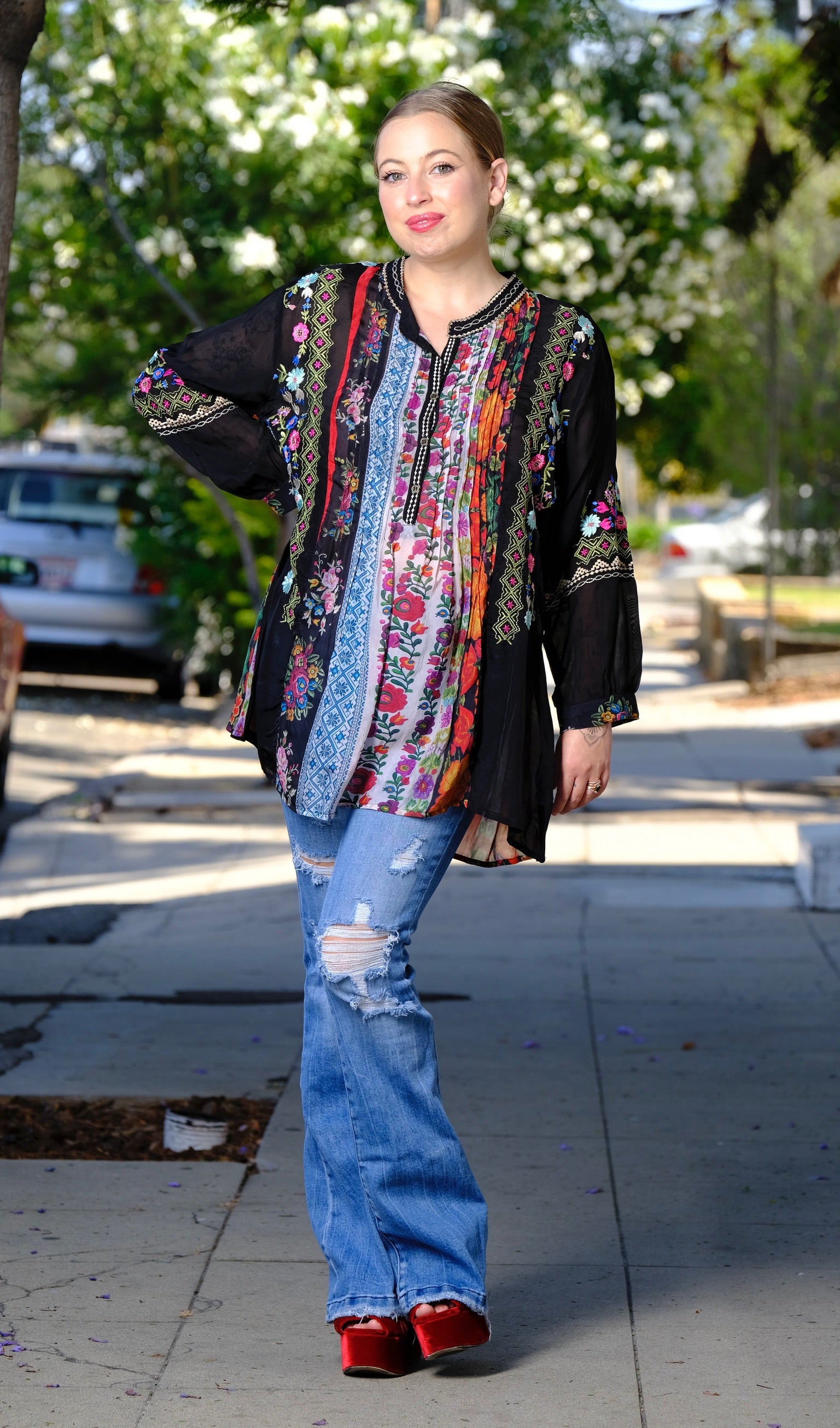 Our trendy Silk Blouse combines luxe fabrication with artisan-inspired embroideries. Each is completely unique, heavily embroidered, and painted with an array of colors.