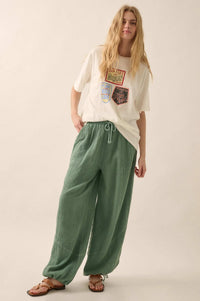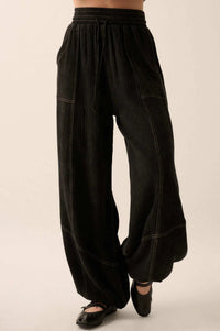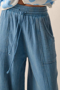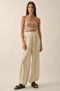 • Mineral washed cotton gauze pants.
