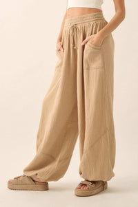 Jump In Crinkle Cotton Drawstring Parachute Pants