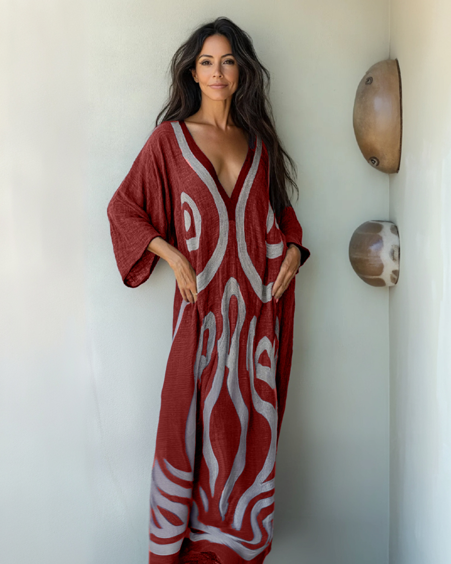 Elegant Women's Cotton-Linen Kaftan – Breathable & Stylish