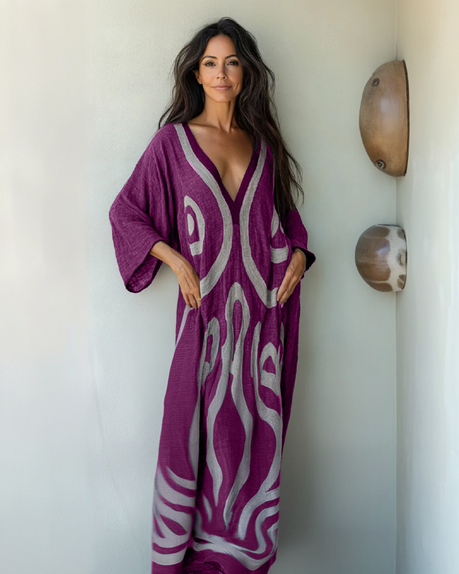 Linen Printed Kaftan Maxi Dress