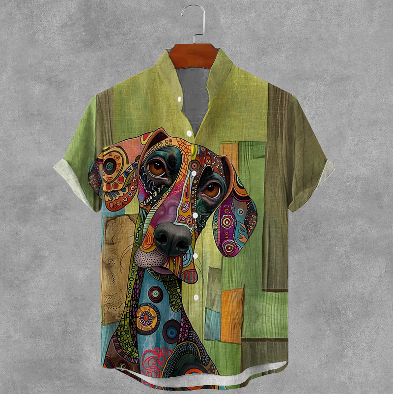 Men's Abstract Dog Art Print Casual Shirt