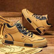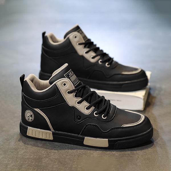 The men's casual lace-up contrasting high-top sneakers combine comfort and style, featuring a sleek design that elevates any outfit. Crafted with durable materials, these sneakers showcase a bold contrasting color scheme that adds a modern twist to the classic high-top silhouette. The cushioned insole ensures all-day comfort, while the lace-up closure provides a secure fit. Perfect for casual outings or laid-back weekends, these sneakers effortlessly blend versatility with a touch of sporty flair, making them an ultimate choice for the contemporary man.
