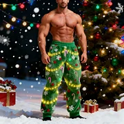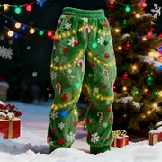 Men's Christmas Tree Lights Cosplay Plush Casual Pants