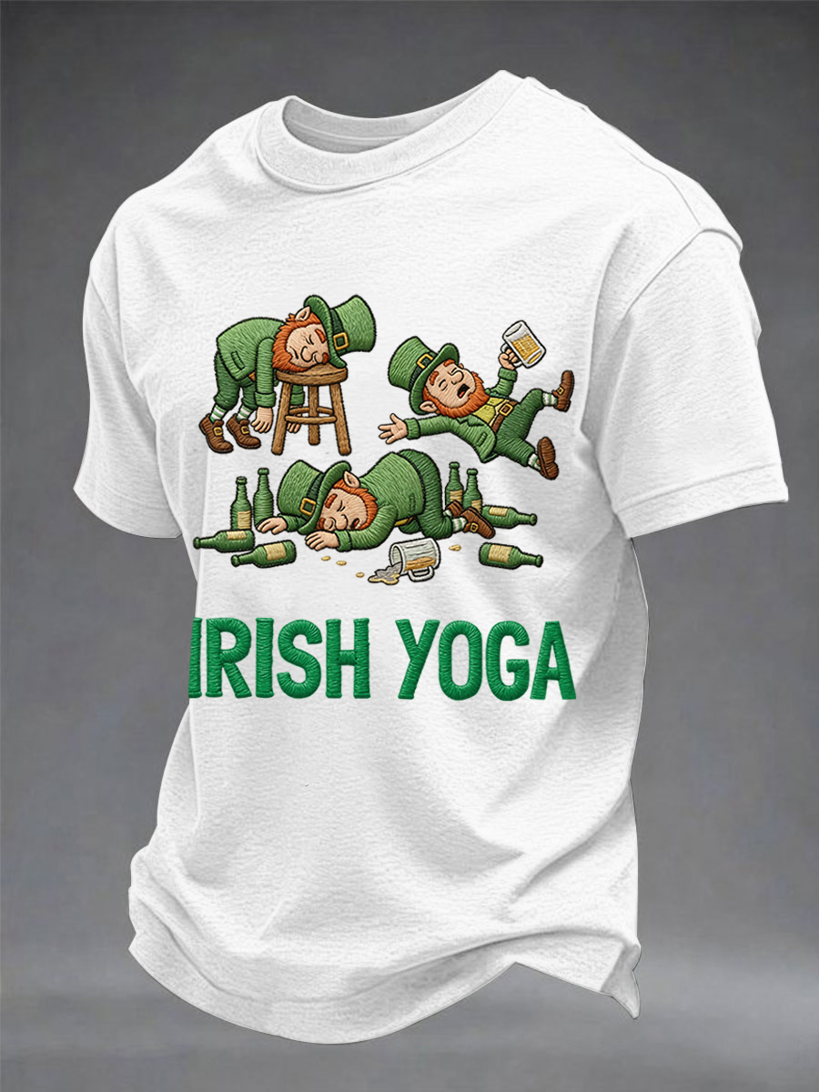 Men's Funny St. Patrick's Day Irish Yoga Print Casual Tee