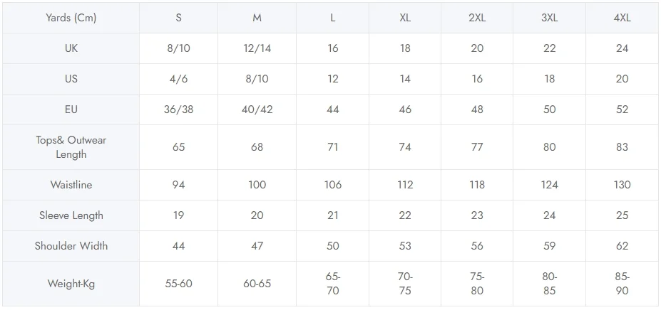 Yards (cm)SMLXL2XL3XL4XL5XL