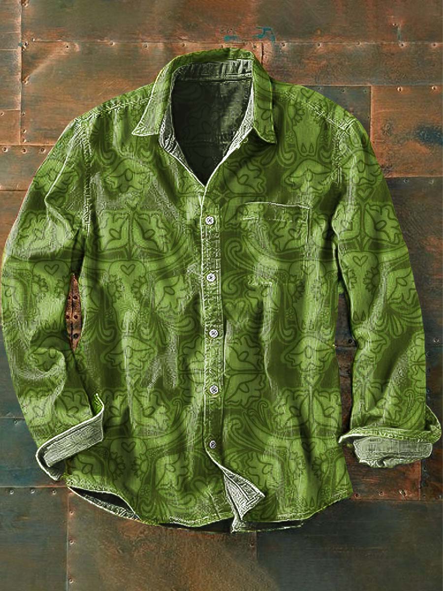 Men's Western Pattern Cow Print Casual Lapel Long Sleeve Shirt