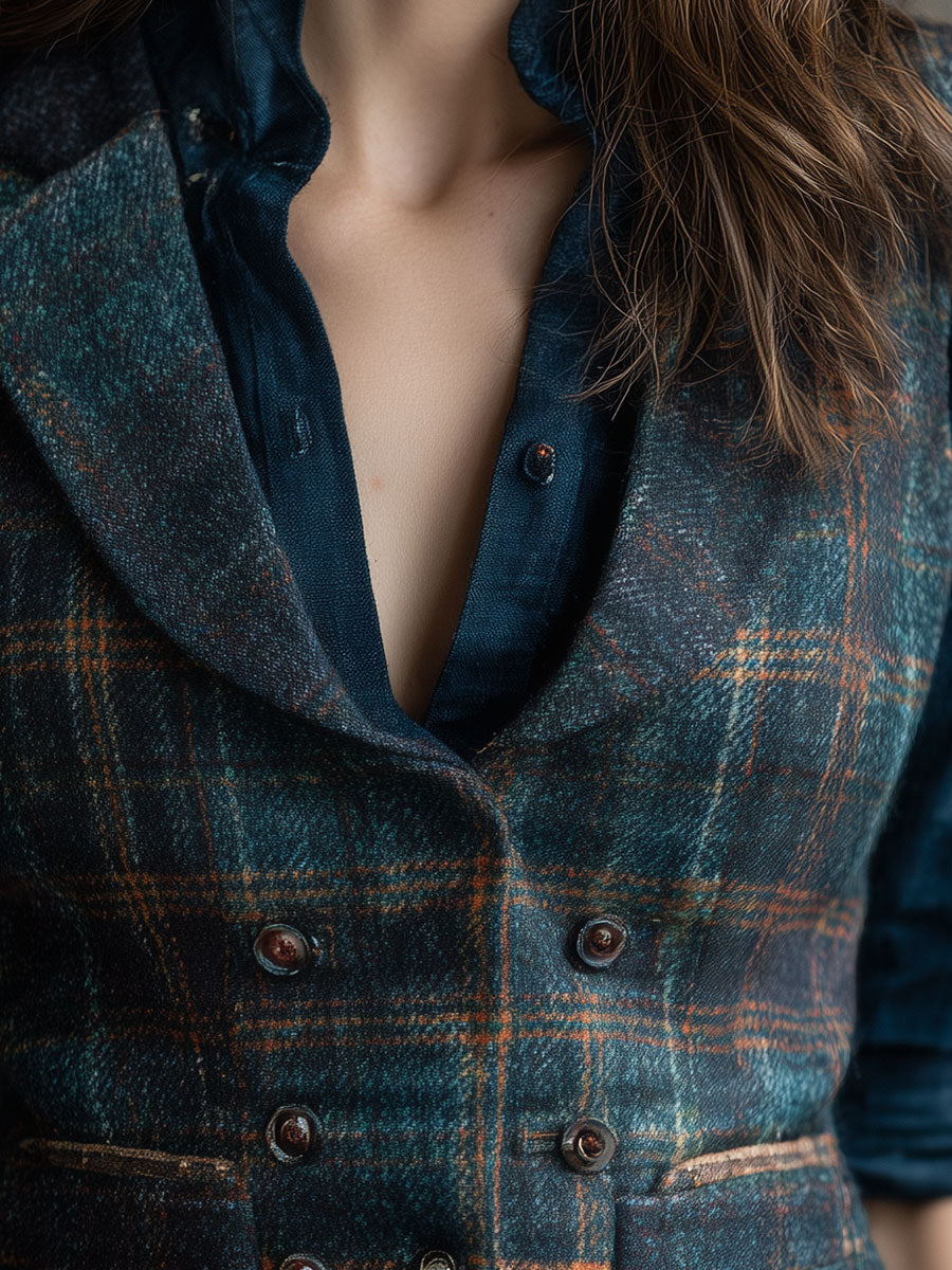 Retro Lapel Plaid Wool Vest