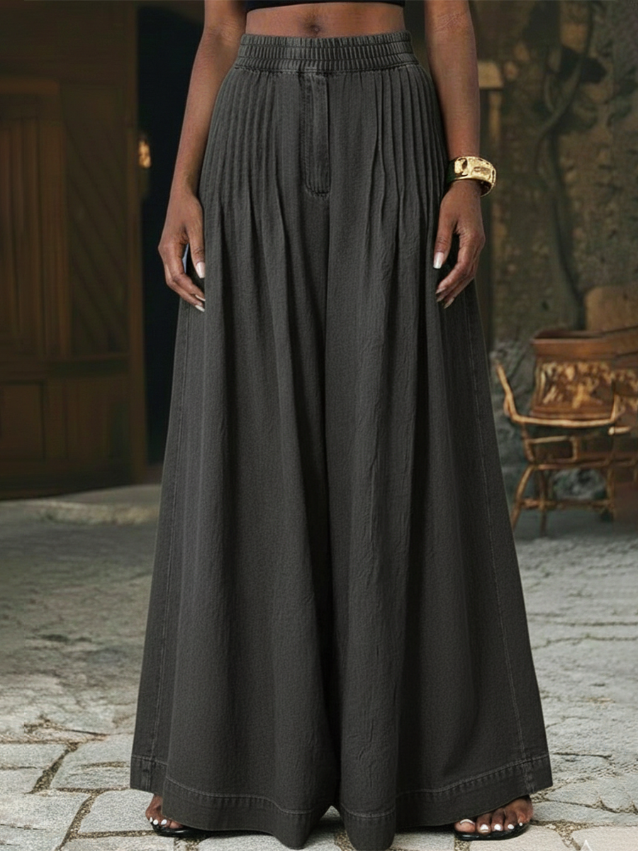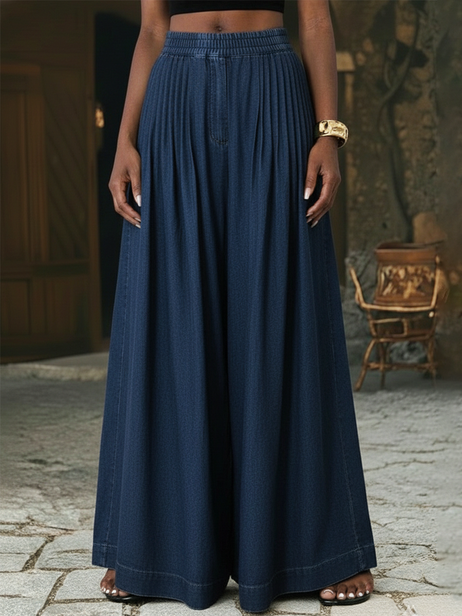 Retro Pleated Extra-wide Leg Denim Trousers