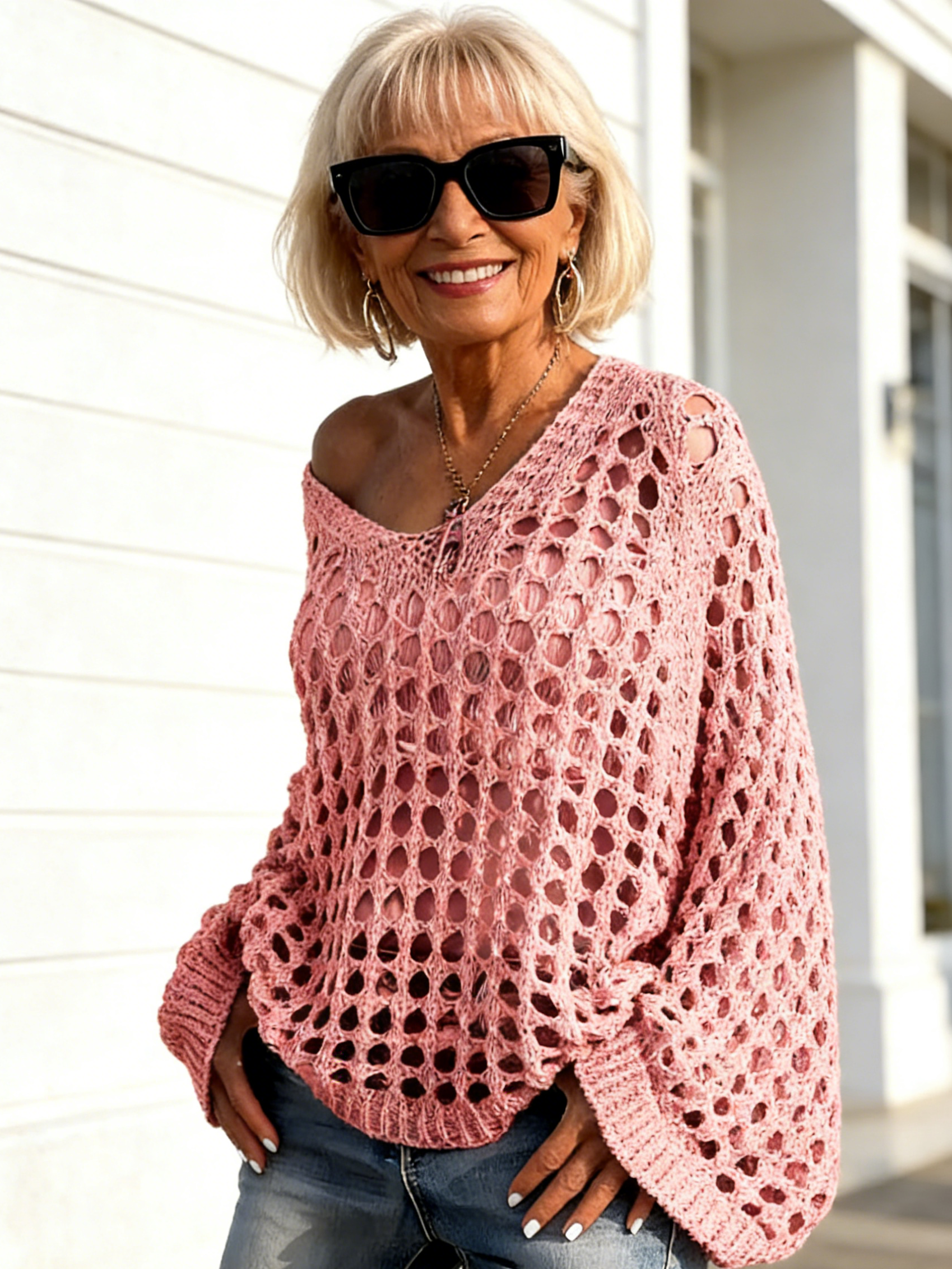 Sexy Hollow Knitted Sunscreen Shirt Vacation Knitted Sweater Women's Spring and Summer Outdoor Beach Blouse Top