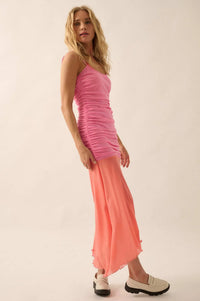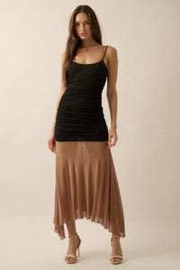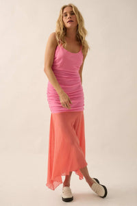 Sheer Beauty Colorblock Mesh Drop-Waist Maxi Dress