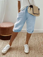 Solid Color Side Pockets Drawstring Casual Pants