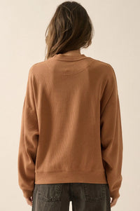 • Waffle-knit thermal graphic top.