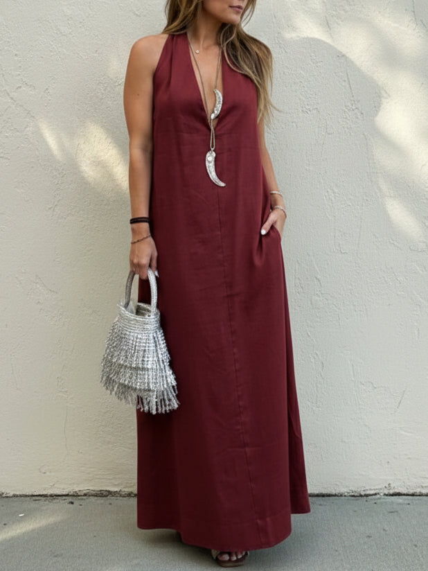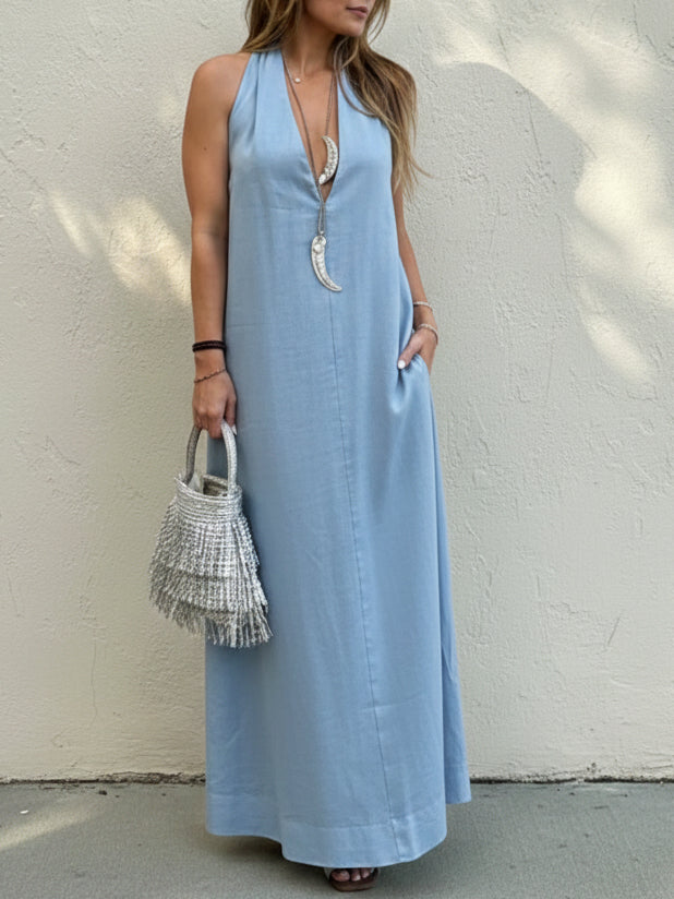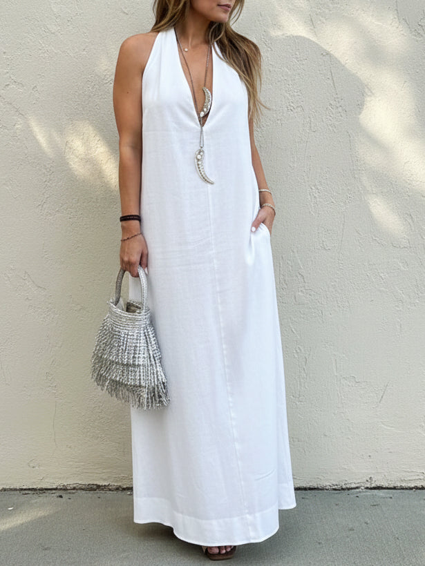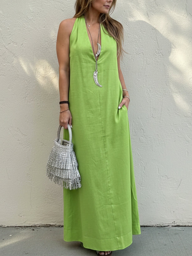 Stylish Elegant Minimalist Halter Neck Linen Maxi Dress