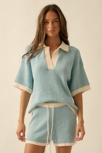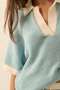 Take It Easy Contrast Knit Short-Sleeve Sweater