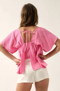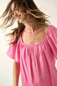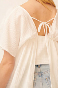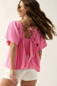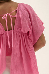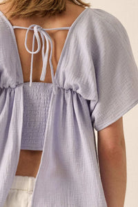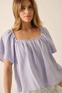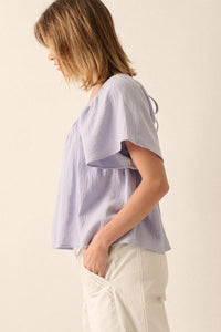 - Solid cotton gauze blouse.