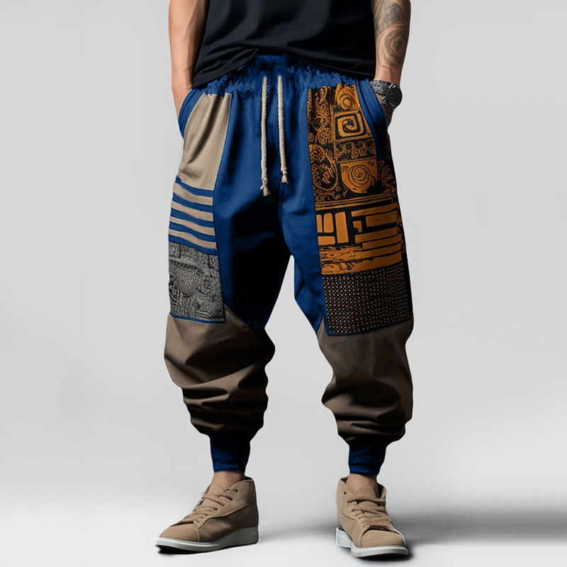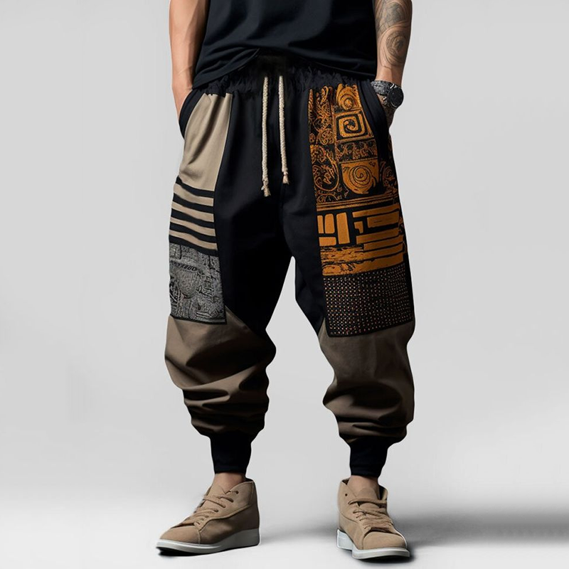 Vintage Japanese Art Geo Pattern Casual Loose Drawstring Waist Pants