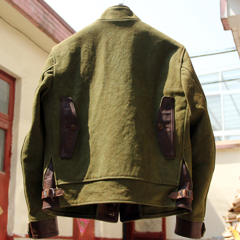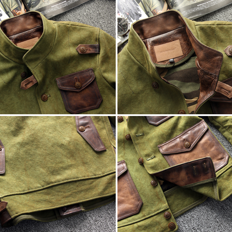 Vintage Oil Waxed Canvas Leather Biker Jacket