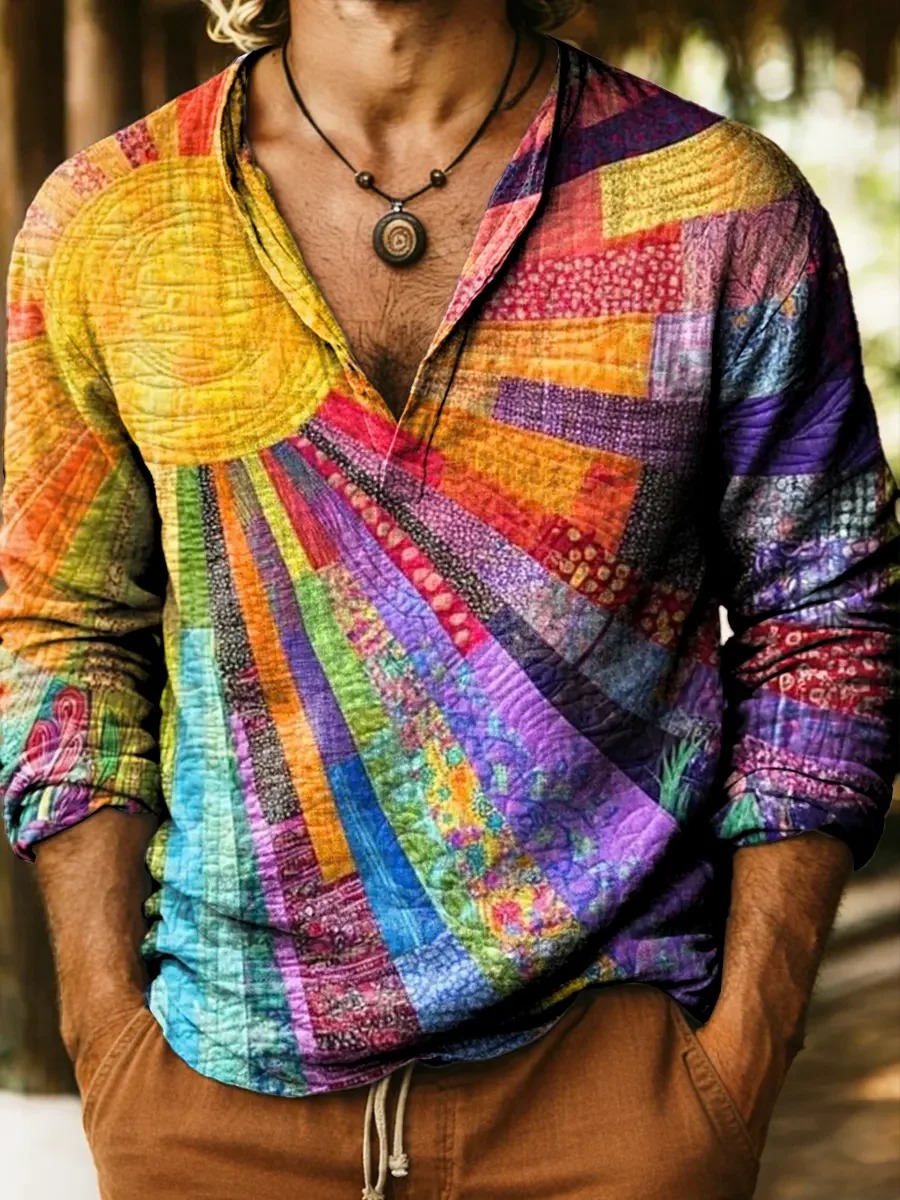Vintage Sun Patchwork Women's Art Print Casual Long Sleeve Shirt Coat