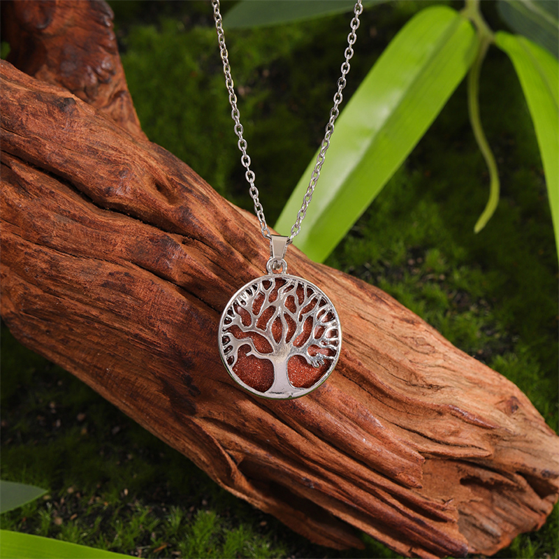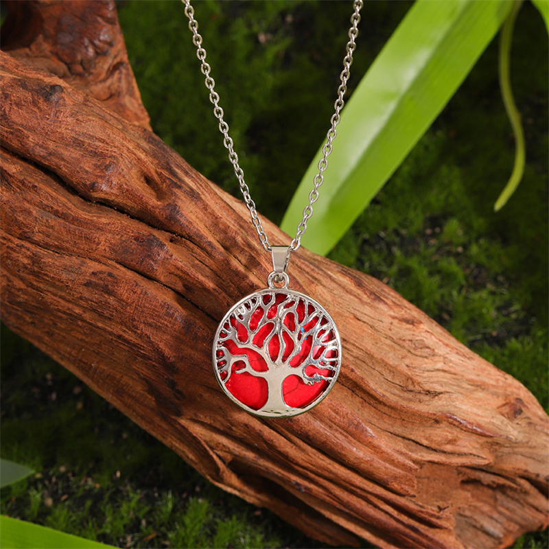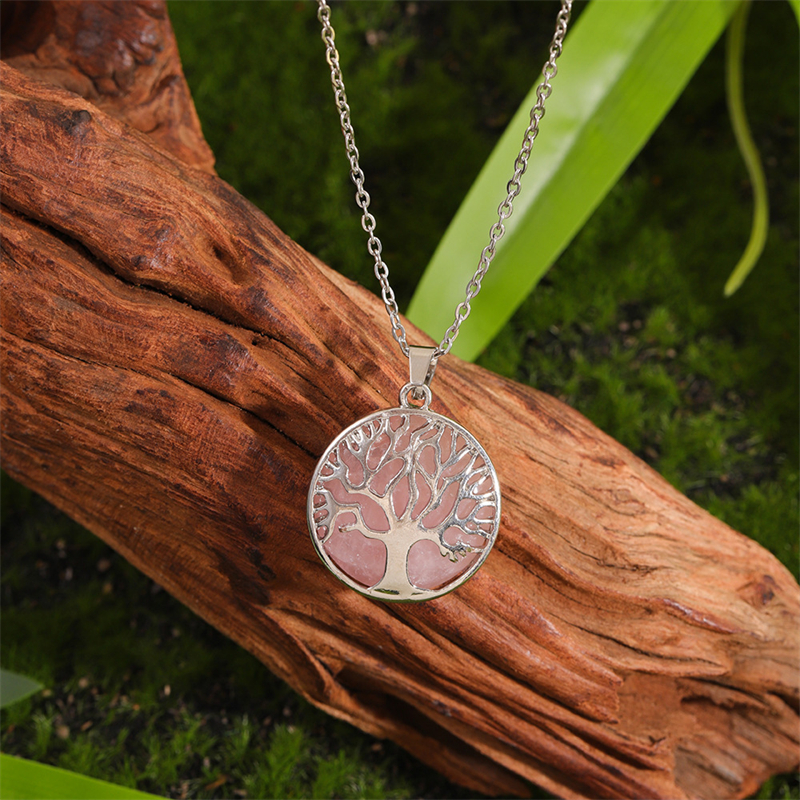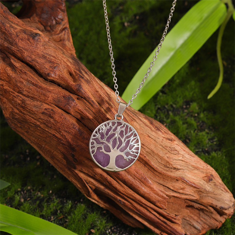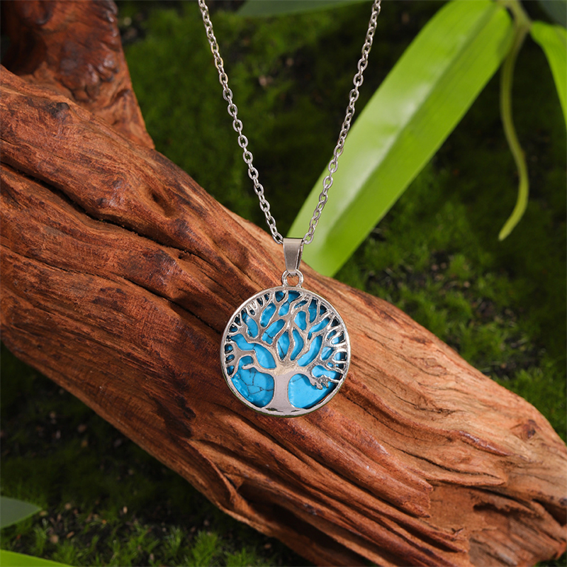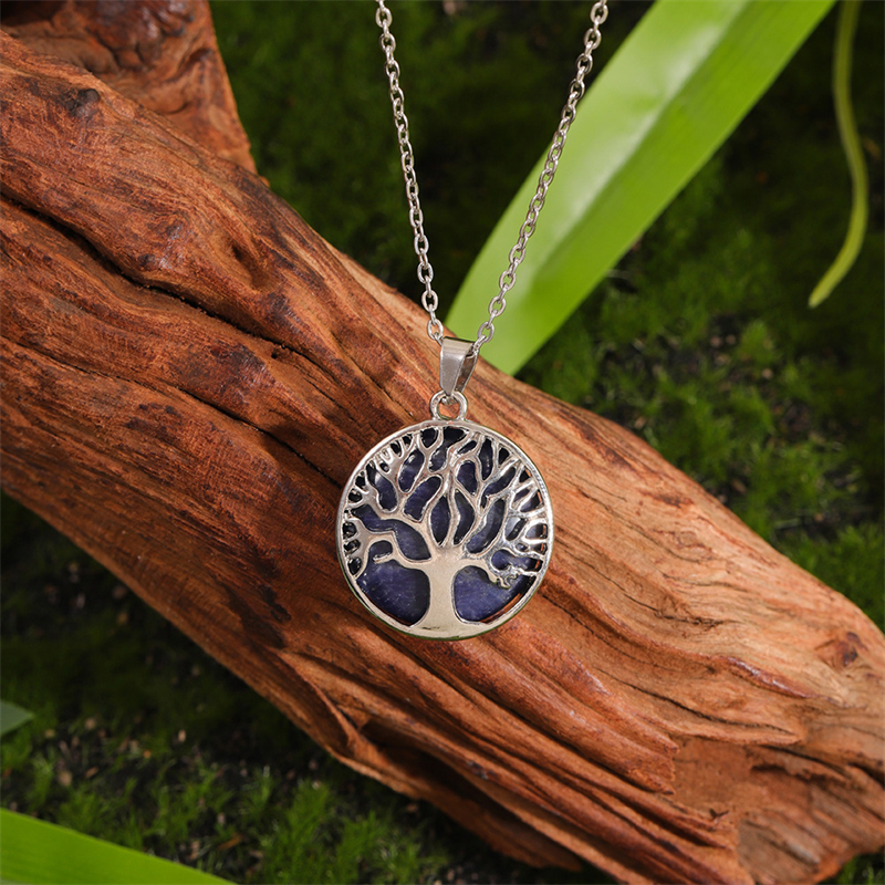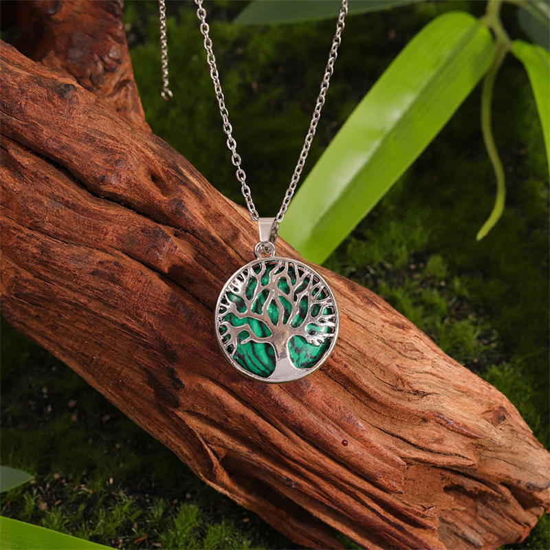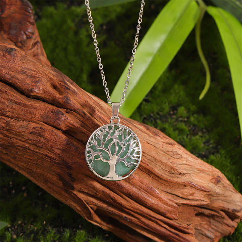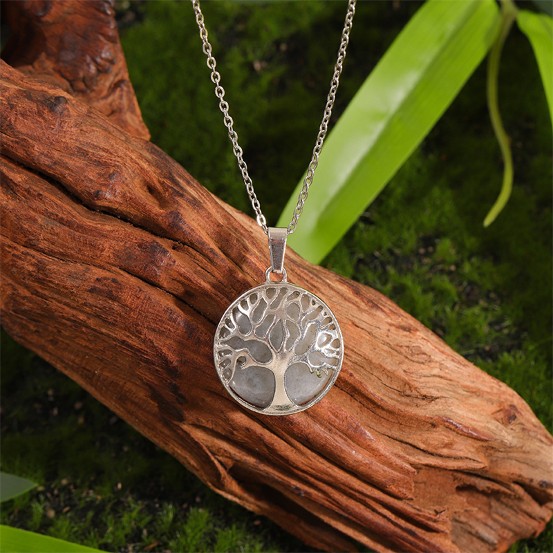 Vintage Viking Tree Of Life Carved Natural Stone Necklace