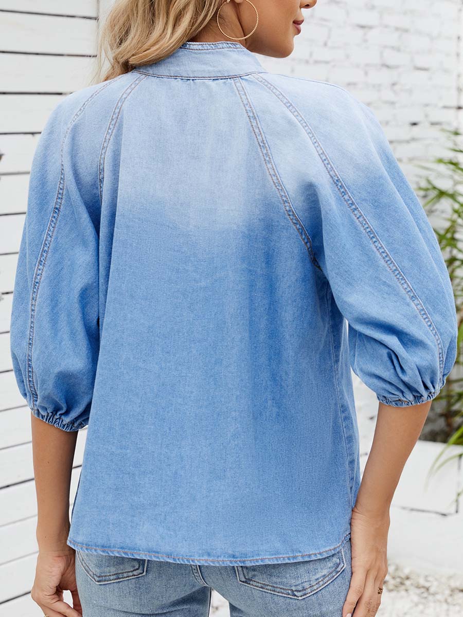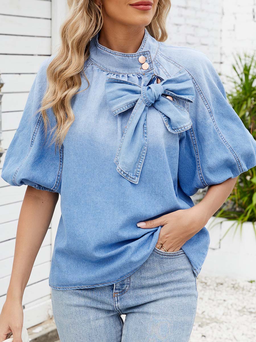 Women's Bow Tie Denim Shirt