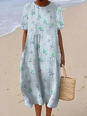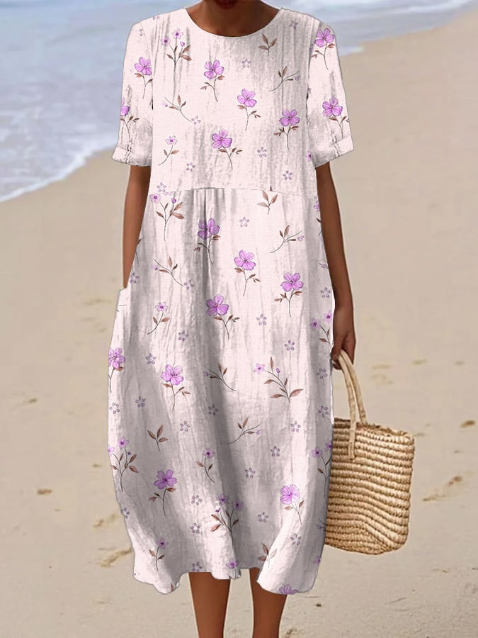 Women's Casual Floral Print Round Neck Short Sleeve Dress
