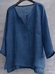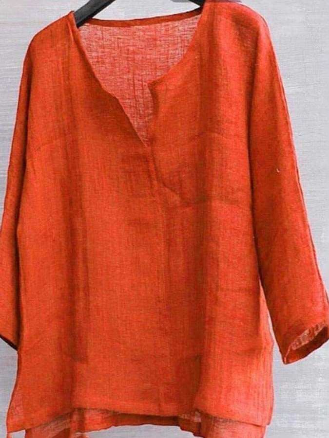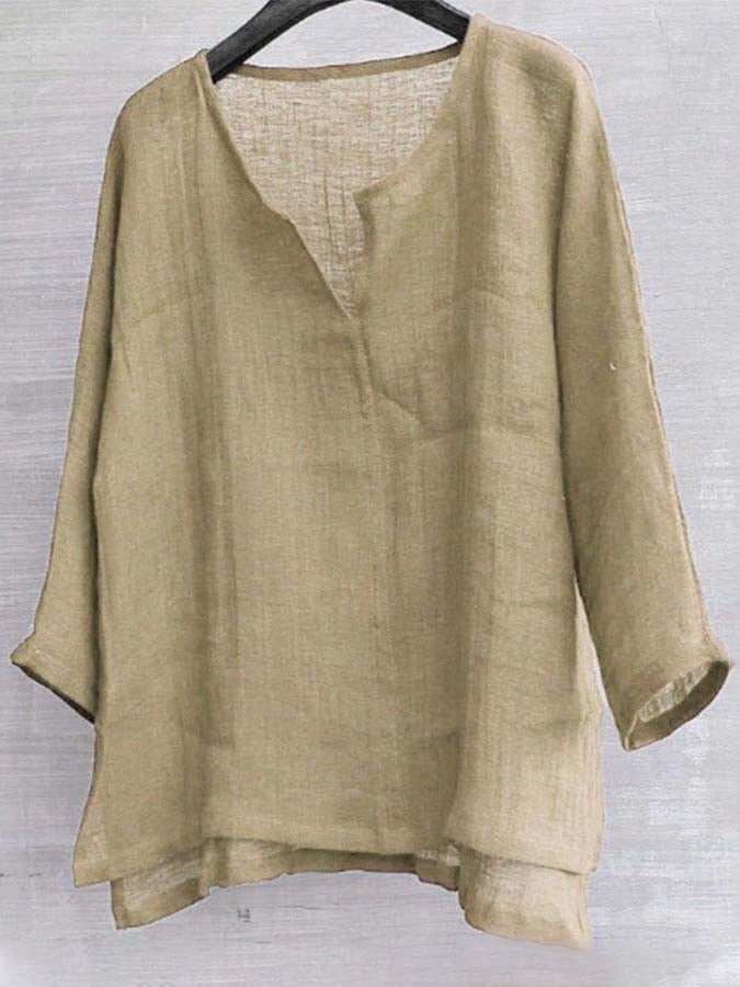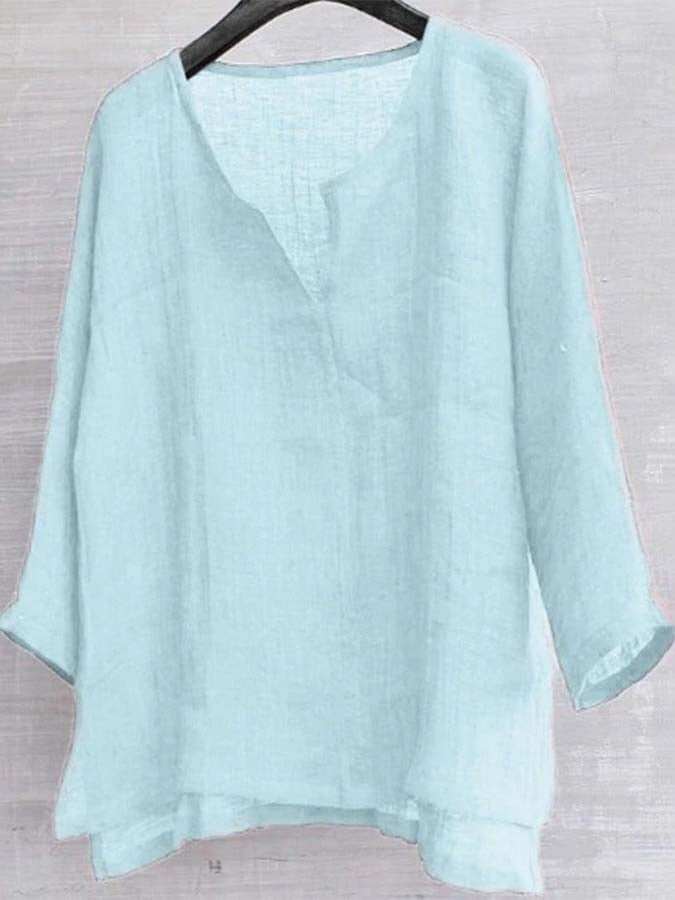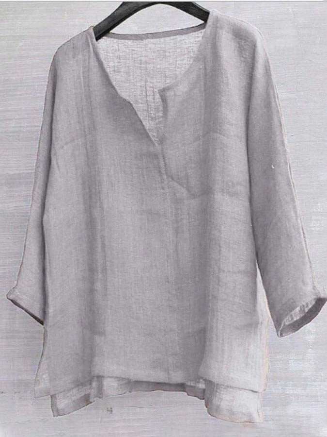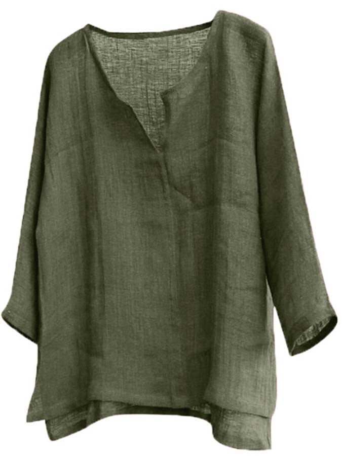 Women'S Casual Loose Solid Color Cotton And Linen Top