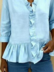 Women'S Casual Ruffled Solid Color Cotton And Linen Top