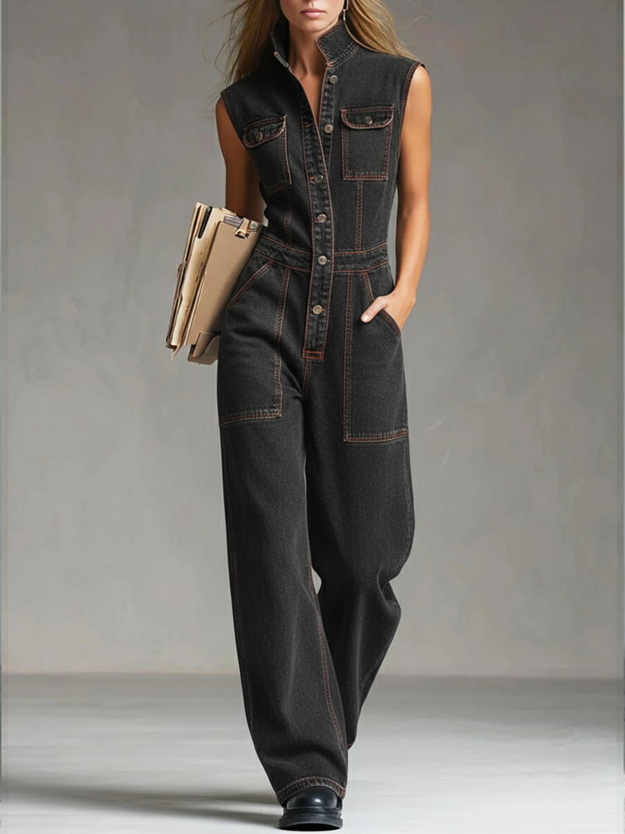 Women's Casual Sleeveless Cotton Denim Jumpsuit