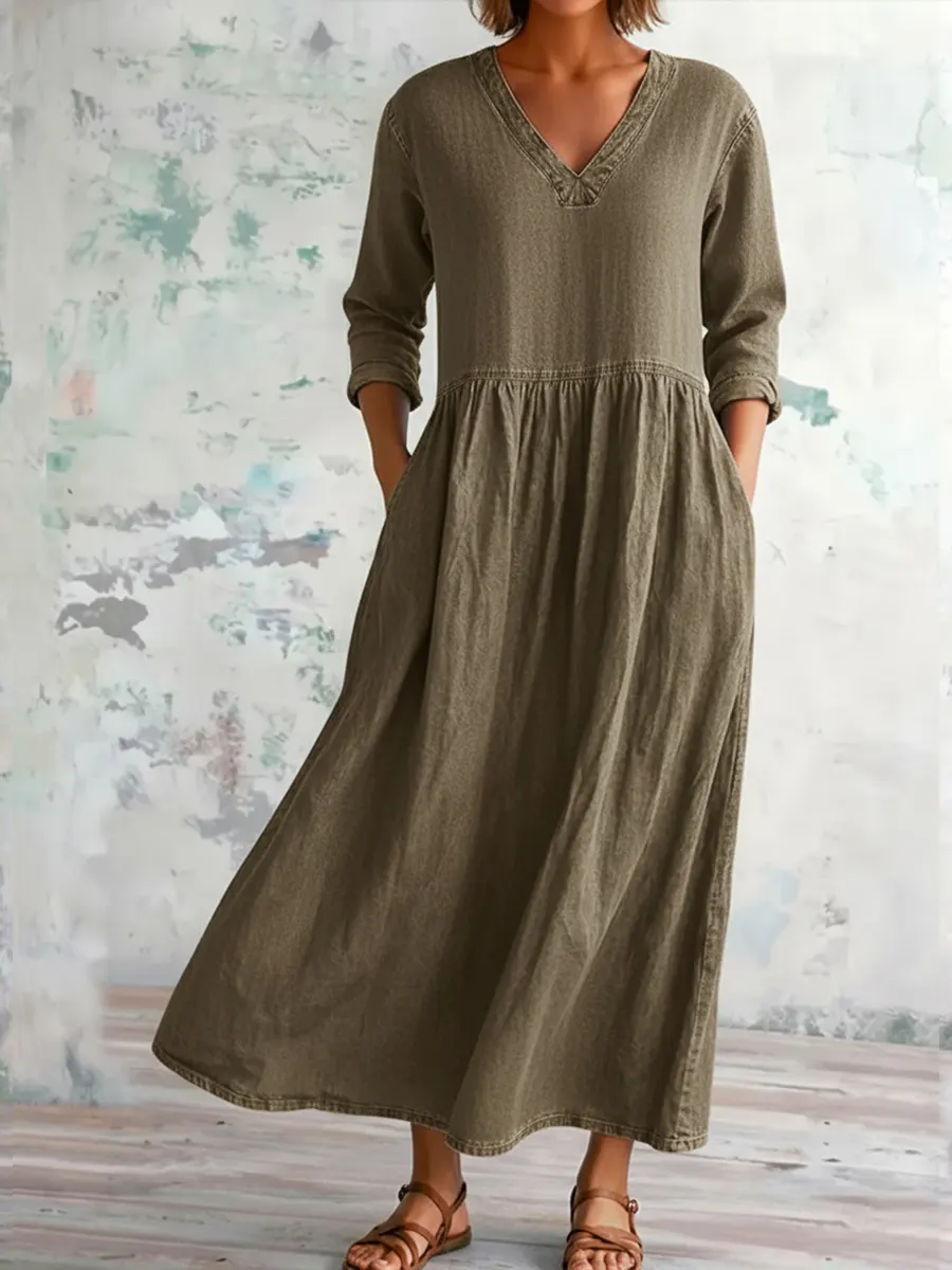 Women's Casual V-neck Denim Cotton Dress
