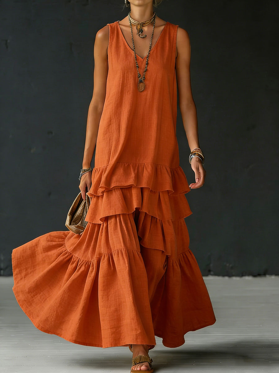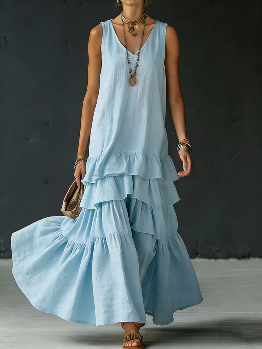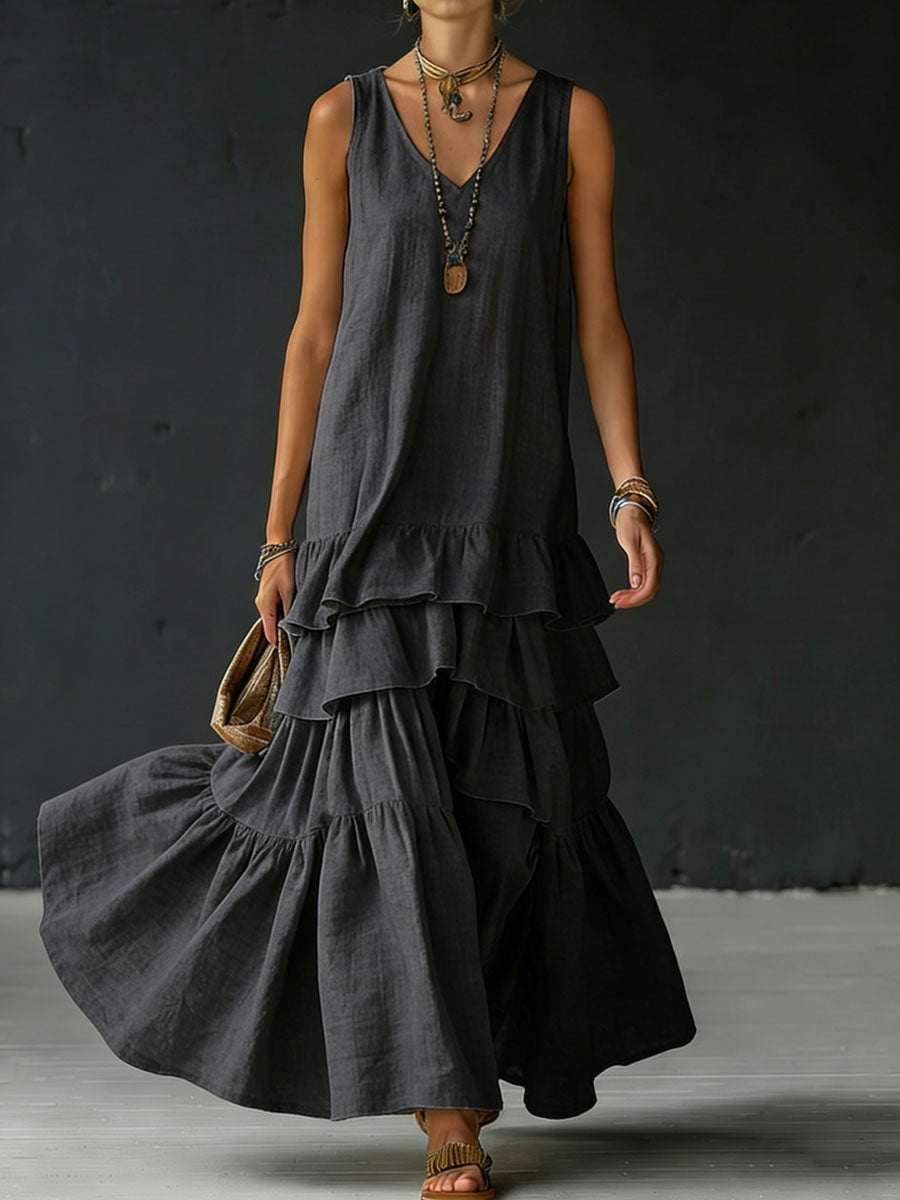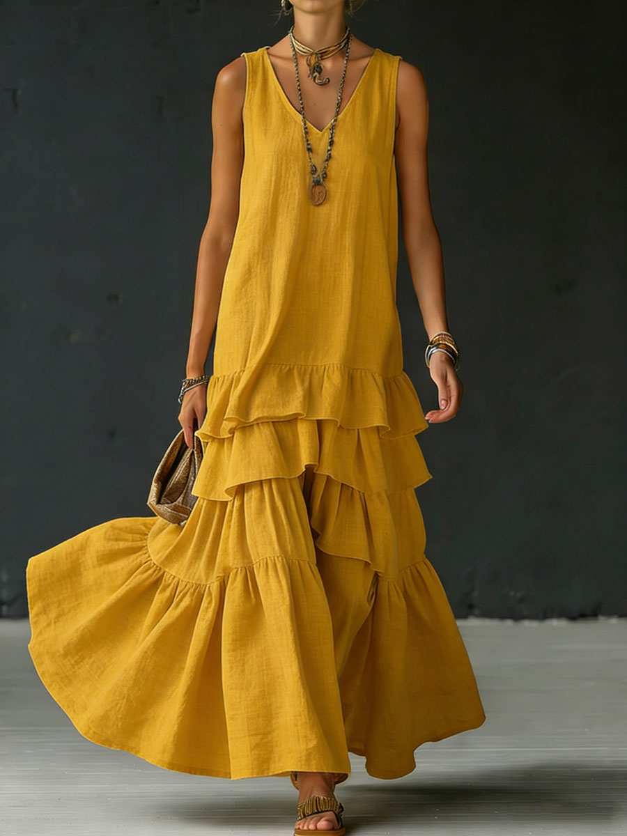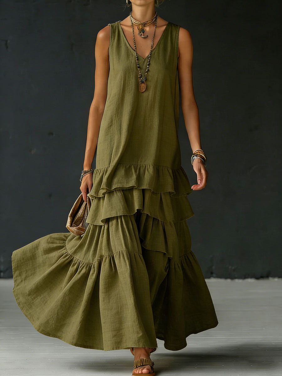 Women's Cotton And Linen Loose-fitting Solid Color Vest Dress