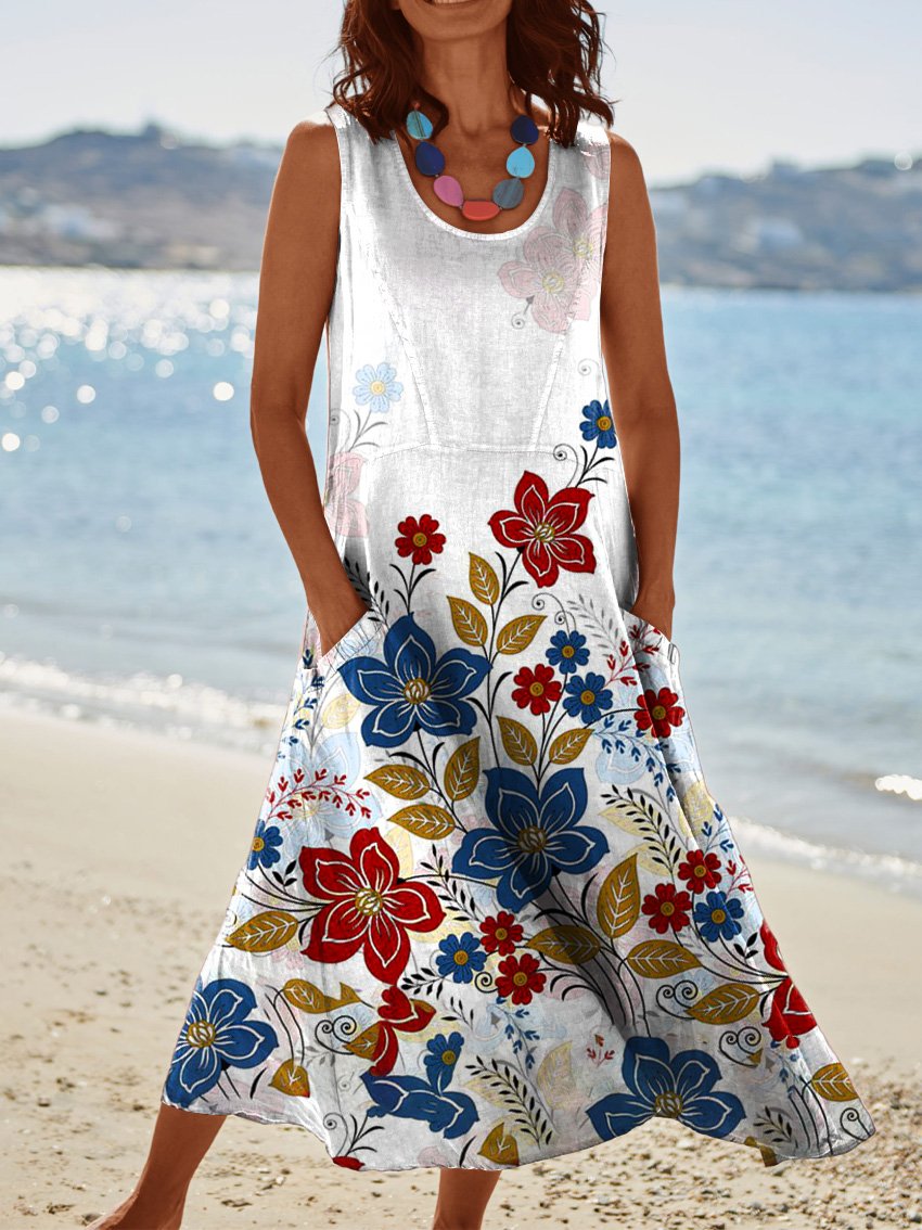 Women's Floral Art Print Casual Linen Dress