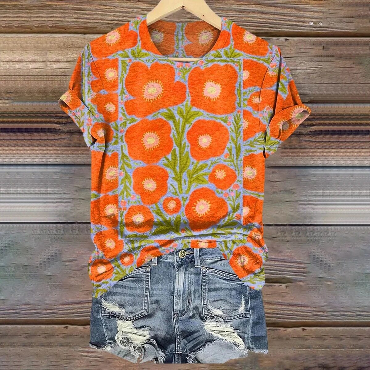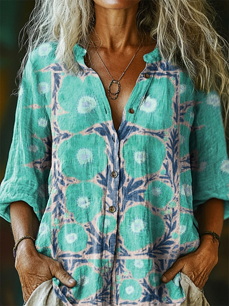 Women's Floral Pattern Art Print Casual Cotton Linen Shirt