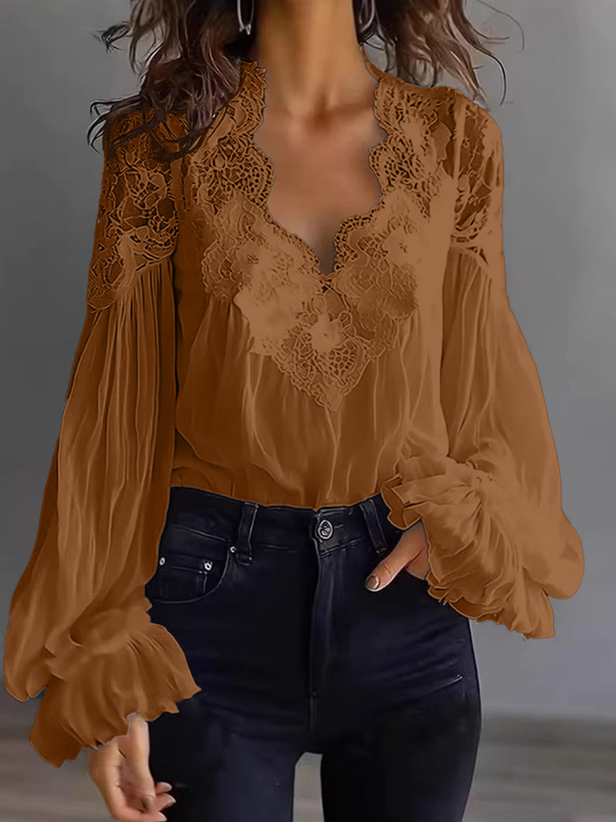 Women's Lace Patchwork Puff Sleeve Shirt