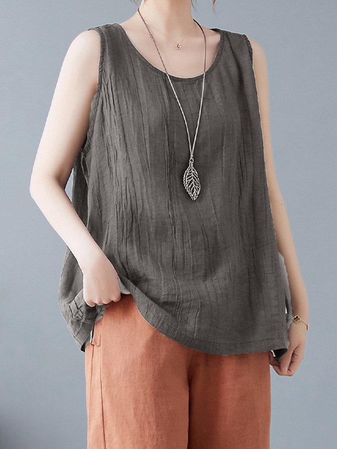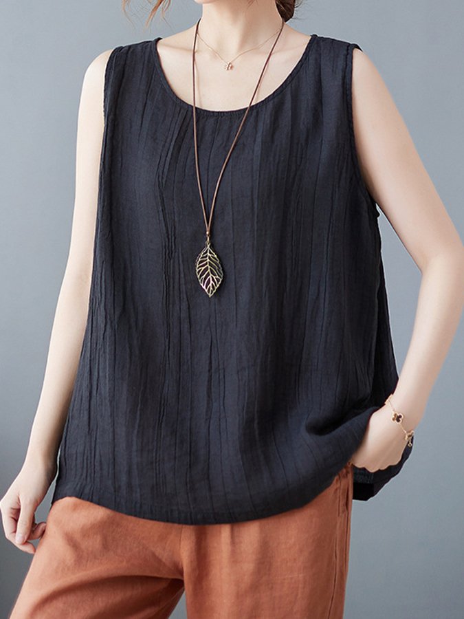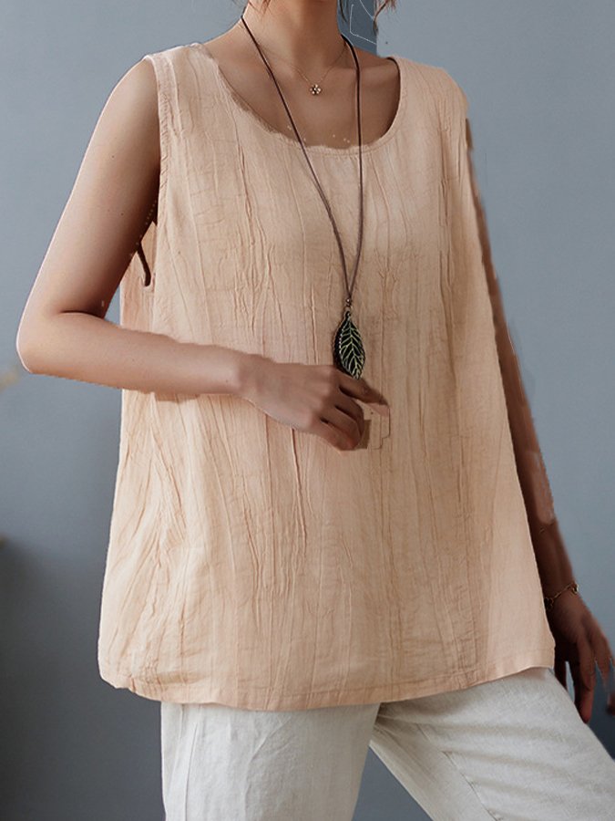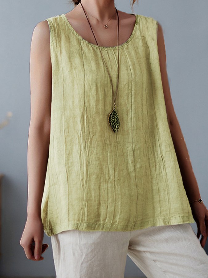 Women's Pure Color Sleeveless Cotton Linen Tee