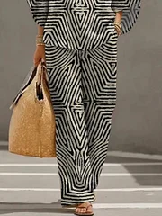 Women's Retro Line Art Print Casual 3/4 Sleeve Top And Pants Cotton Linen Suits