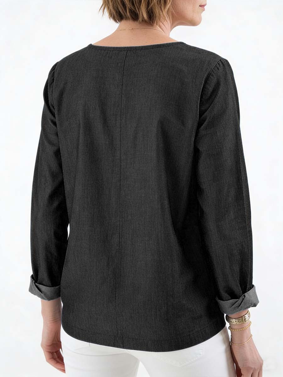 Women's Round Neck Long-sleeved Casual Loose Denim Top