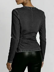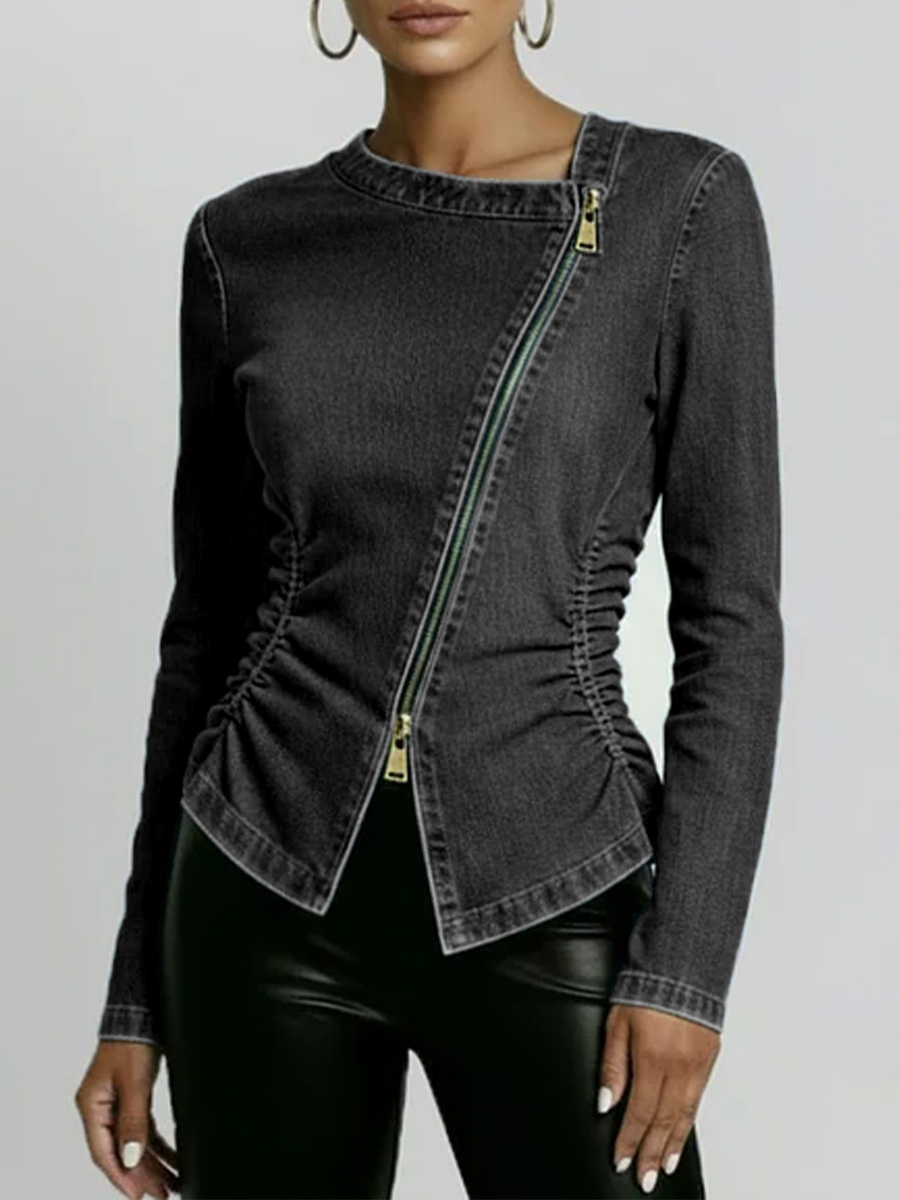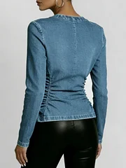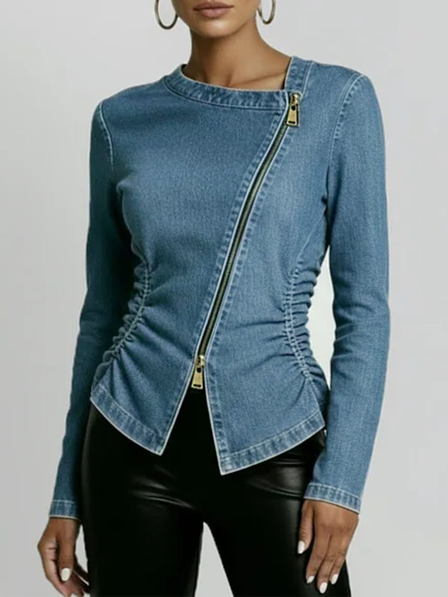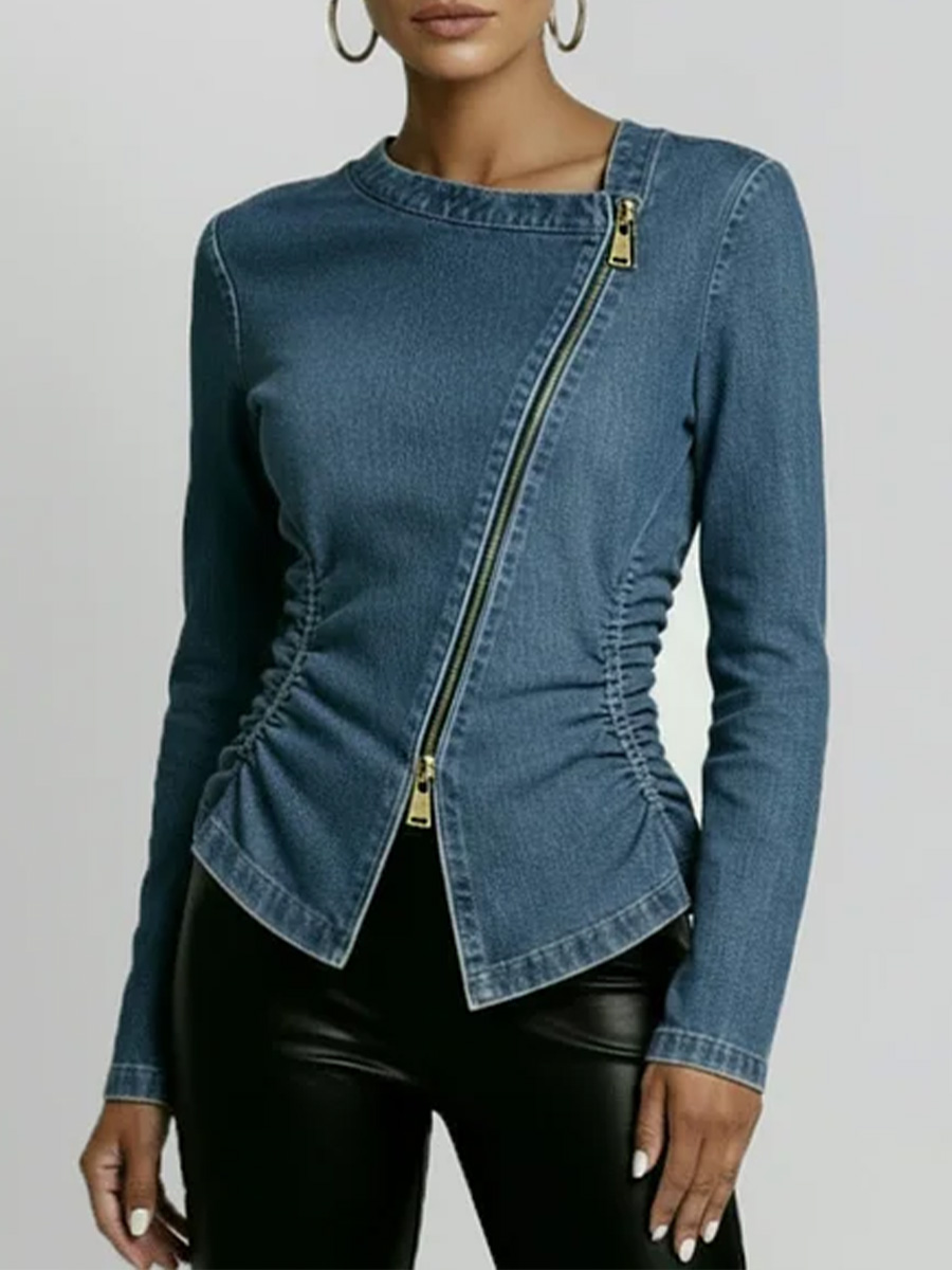 Women's Round Neck Long-sleeved Casual Slim-fit Denim Top