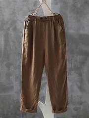 Women's Simple Linen Blend Elastic Waist Casual Pants