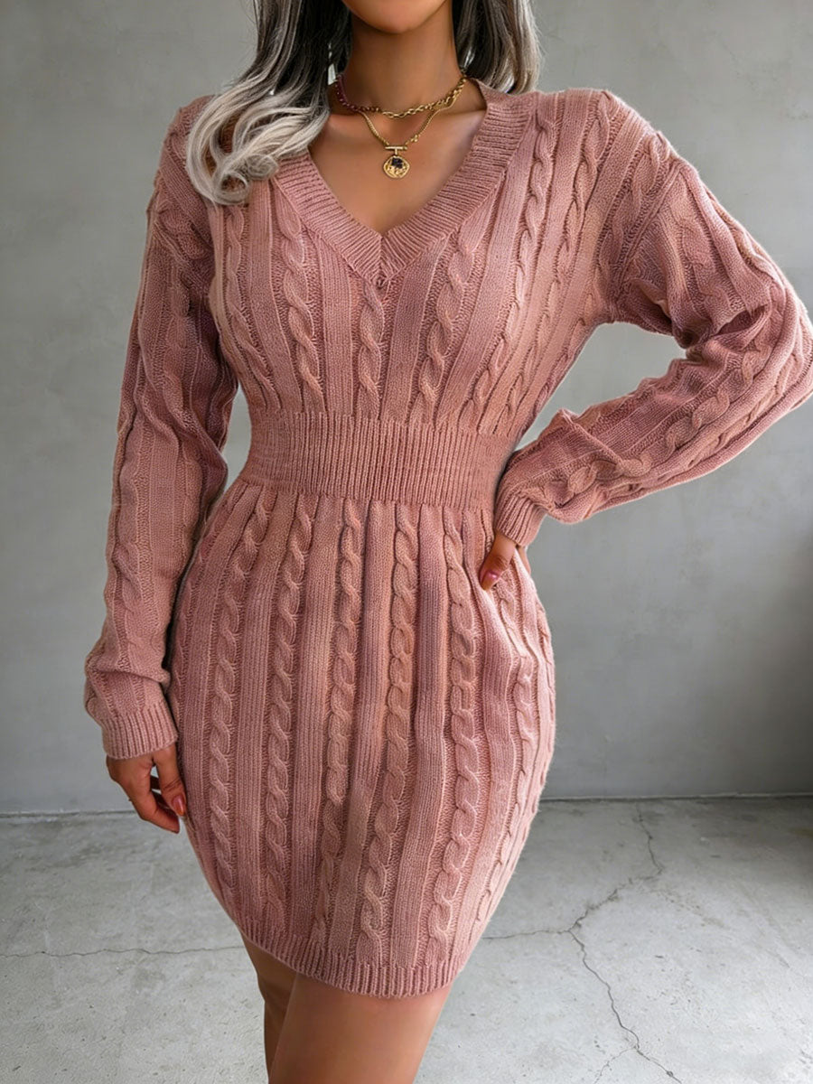 Women's Slim Fit Knitwear Solid Color Long Sleeve V-Neck Mini Skirt