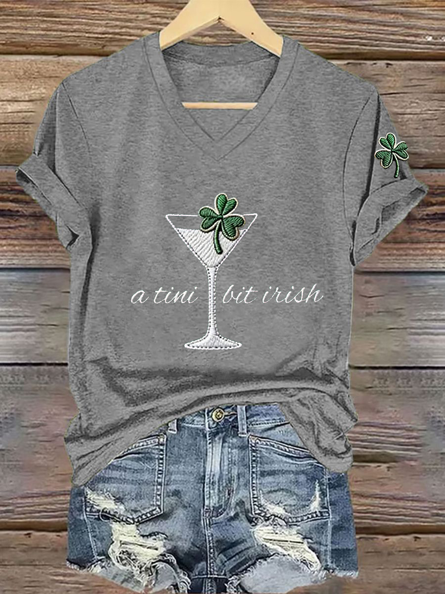 Women's St. Patrick's Day A Tini Bit Irish Shamrock Art Print V-Neck Short Sleeve T-shirt
