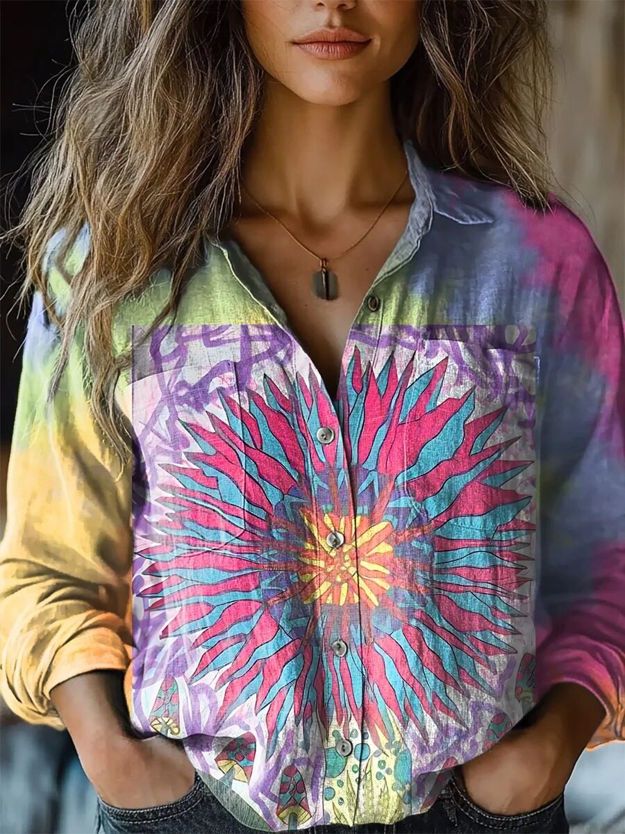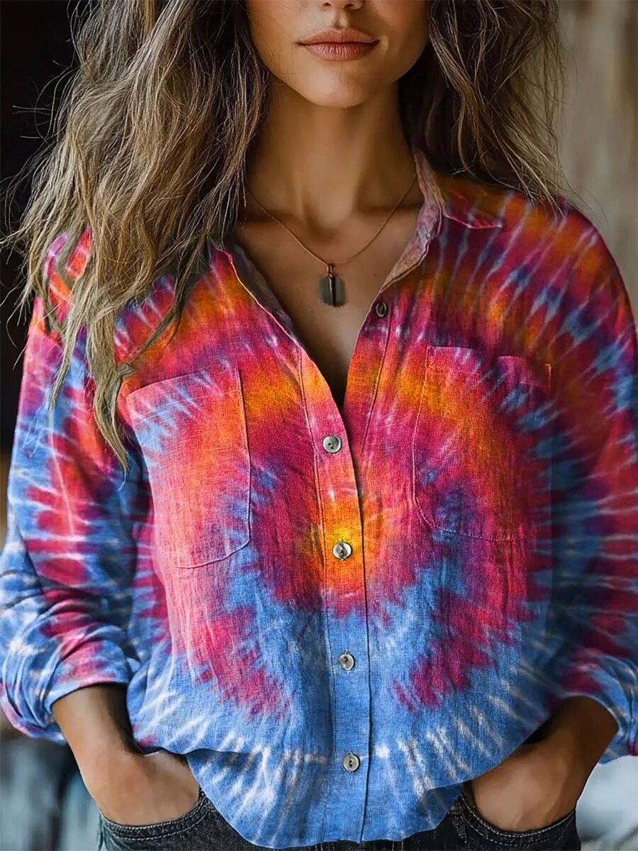 Women's Star Tie Dye Print Casual Long Sleeve Comfortable Cotton Shirt