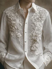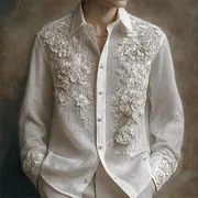 Men's Vintage Floral Lace Embroidered Linen Blouse