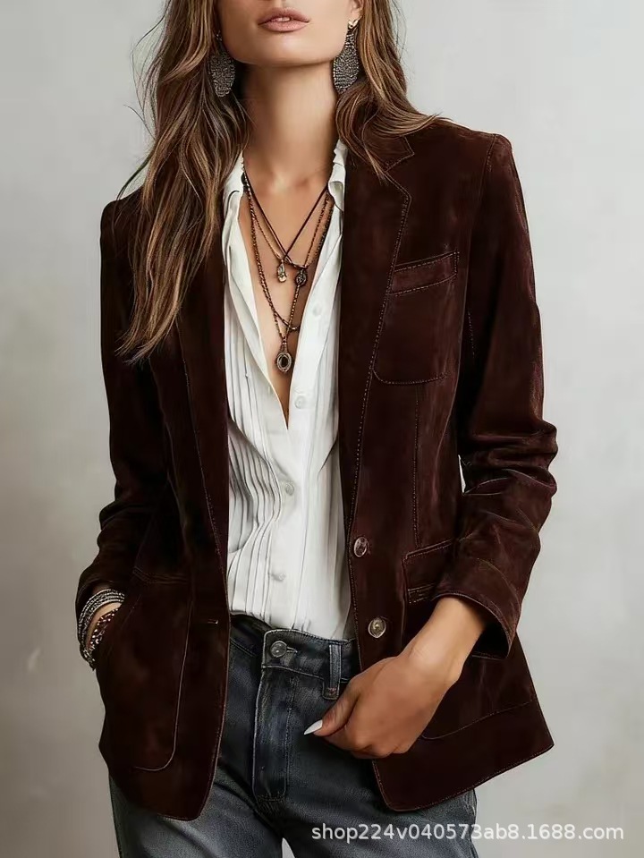 1.Luxurious Suede & Retro Elegance 2.Flattering Single-Breasted Design 3.Versatile Styling for Multiple Occasions