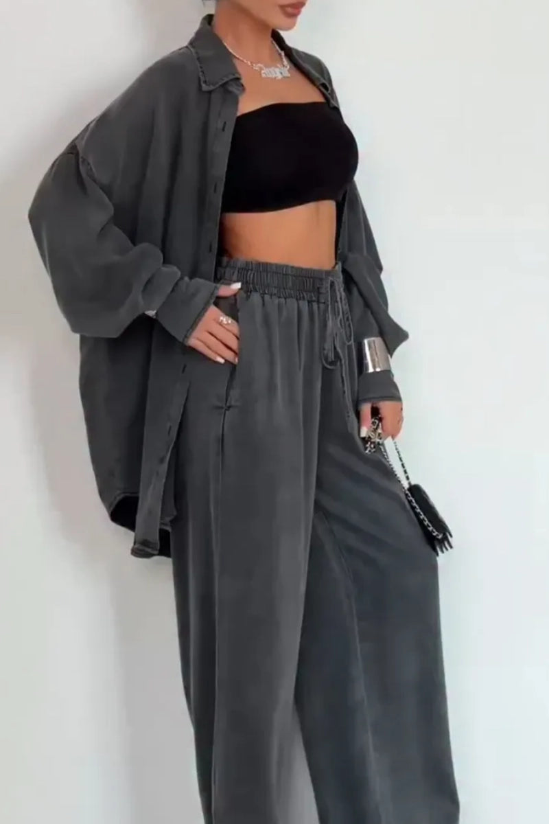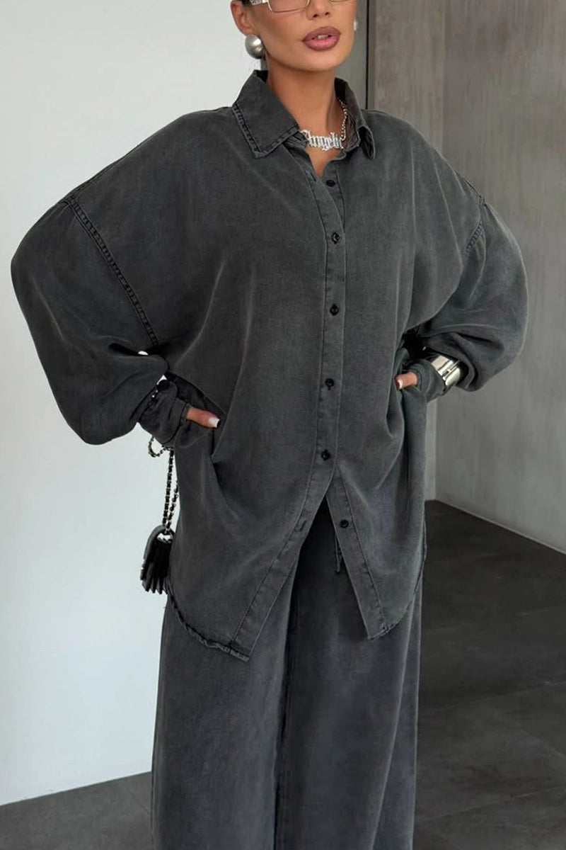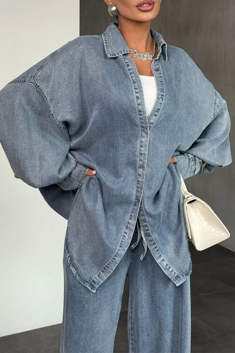 Women's Solid Color Loose Lapel Buttoned Cardigan Pants Denim Suits