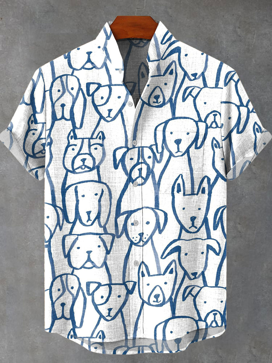 Cute Puppy Dog Vintage Print Casual Shirt