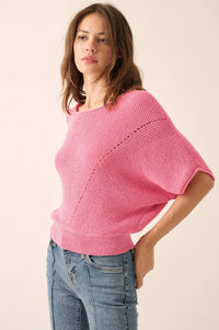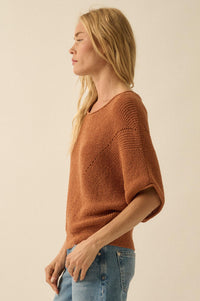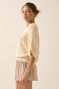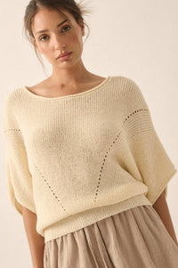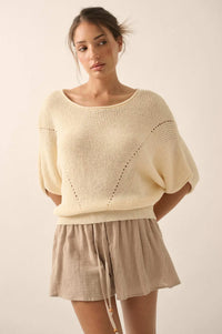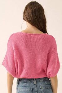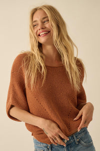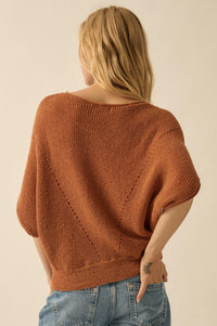 True Self Short-Sleeve Pointelle Rib-Knit Sweater