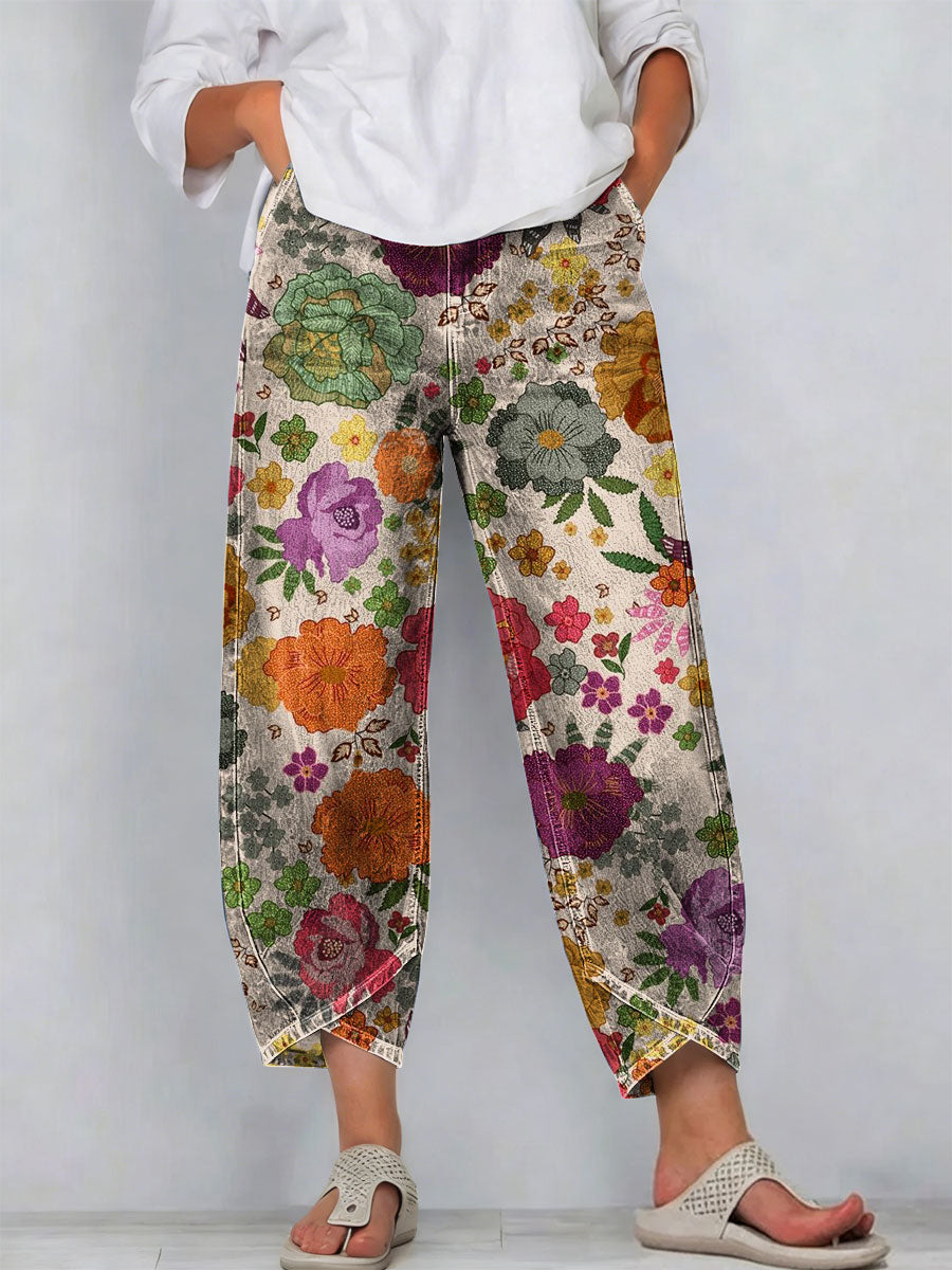 Women's Vintage Flowers Floral Patterns Art Prints Casual Denim Cotton Pants